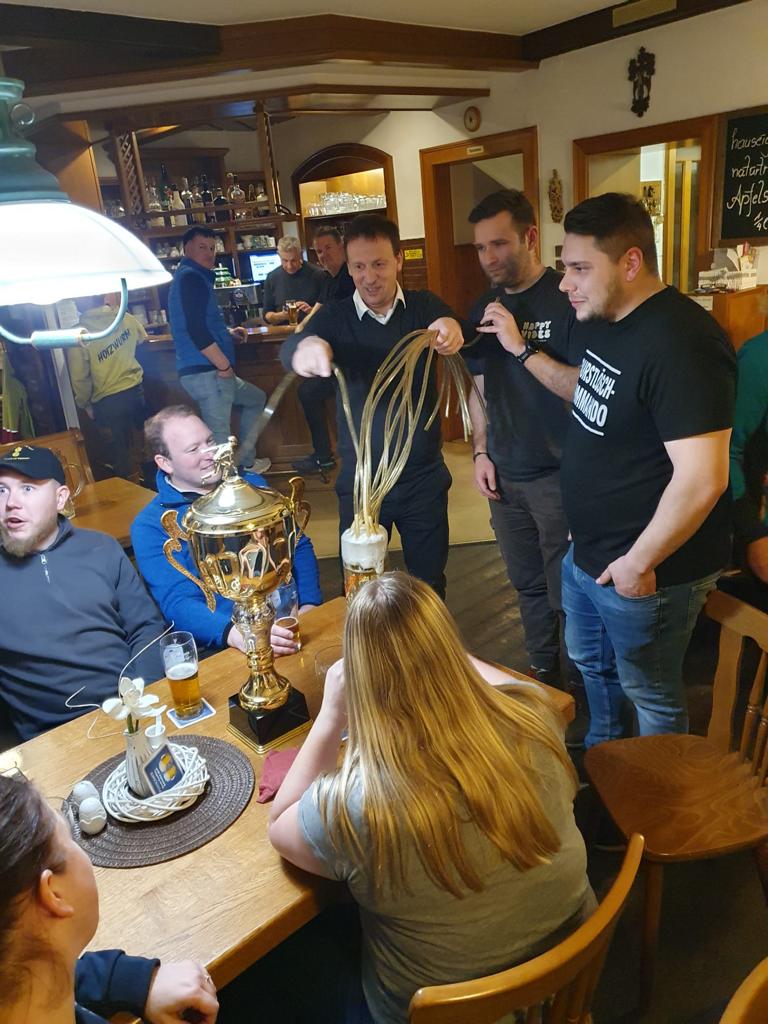 Bei diesem Duell stand eines im Mittelpunkt – die Gaude. So waren die beiden „Moare“ in nostalgischen Uniformen unterwegs und es nahmen auch viele Mitglieder teil, die den Eisstock heuer erstmals kennenlernen durften. Trotzdem ging es beim Match sehr knapp her und die Entscheidung fiel erst auf der letzten Kehre. Dies musste im Anschluss natürlich im Gasthaus List-Wiesbauer bei Schweinsbraten noch ausführlich besprochen und gefeiert werden.